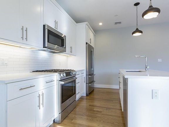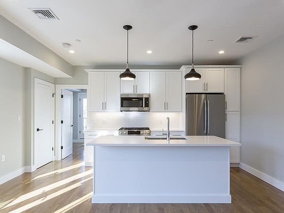 Brand new construction in ideal location! This luxury 2 bedroom, 2 full bath with an influx of natural light & a sensational open layout, has been custom designed for your enjoyment! The kitchen is a chef's dream with Bosch stainless steel appliances, Grohe Fixtures, quartz countertops, chic pendant lighting, and an island perfect for entertaining. Open up the Juliette balcony in your living rm to take in the fresh air & look out on "Our Garden Park". The master suite features a luxurious master bath with beautiful designs & a frameless glass shower. There is a 2nd, equally as stunning full bathroom! The 2nd bedroom also features a Juliette balcony and has generous closet space. Gleaming hardwood floors throughout the unit, full in unit laundry room with plenty of space for storage, central air, & a nest thermostat system complete this home! Just steps from the Maverick T Stop, East Boston Waterfront, Shaws grocery store! Easy on street parking!