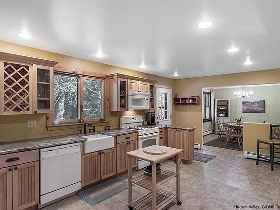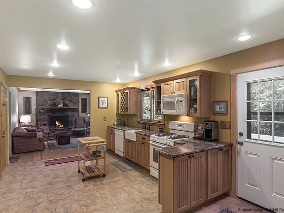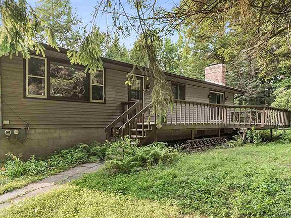 Versatile vacation home or rental property- you choose! Live upstairs while renting small apartment to cover your expenses or rent out both and maximize income potential or use entire home for your own personal getaway in the beautiful Catskill Mountains. 5 bedrooms altogether, spacious three bedroom 2 bath on Main floor includes nicely renovated kitchen, large Master suite, wood floors throughout the dining and living room areas plus a cozy family room with bluestone fireplace and set of glass sliding doors to private back deck. Lower level is set up as a 2 bed 1 bath accessory apartment with open floor plan and shares access to laundry room and 2 car garage. 1 acre lot is tucked into the evergreen woods its very private no visible neighbors and just a short drive to Main Street and Windham Resort. Deceiving large on the inside- must see to appreciate the value and possibilities. Join the renaissance of the Catskills. Priced right!