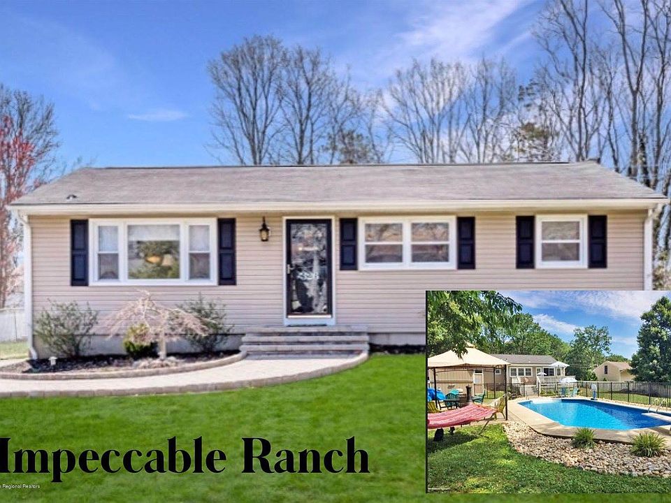 Exquisite 3 BR, 1 BA ranch w/full unfinished basement & incredible curb appeal in sought after Lake Riviera. Situated on a quiet street, this home features a paver walkway & front steps, recently updated kitchen w/quartz countertops, SS appliances & luxury vinyl plank flooring, updated bath w/porcelain & mosaic tile, hardwood floors in living room & bedrooms, & rustic touches throughout (including a barn door). The back room offers extra living space & leads out to a backyard oasis complete w/deck, in-ground pool & paver patio. Newer roof, siding, central A/C, high efficiency furnace, hot water heater & appliances make this a truly move-in ready home. Enjoy Lake Riviera Park, Brick Beach, local shopping & restaurants. Don't Miss This one!