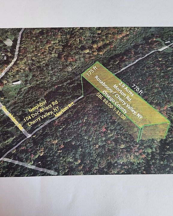 2.9 acres of vacant rural land for sale with 175 feet of town maintained road and no zoning in historic Cherry Valley NY, Otsego County. Historic ?CHERRY VALLEY?, NY in Otsego County was settled in 1739 and perhaps best remembered for the 1778 Massacre on the Village during the Revolutionary War. Since then, Cherry Valley has been home to poet Allen Ginsberg, who founded an artists movement there back in the 60?s & 70s. The town has become known for its arts community and for the summer festival which attracts opera lovers from the Glimmerglass Festival in nearby Cooperstown. Cherry Valley has been visited by such dignitaries as George Washington, Harriet Beecher Stowe, Willa Cather & Hillary Clinton. Enjoy the beauty of Cherry Valley Lilacs during the late spring season. Campers are ok all year long. The property offers 2.9 private acres on town maintained winding country road. The parcel is level to gently elevating & is moderately wooded. Electric is at the road. RV?s welcome! All in a peaceful country setting. Low taxes of 225 a year. SBL # 88.00-1-35.00 GPS coordinates 42.746529, -74.738392 The driveway has been cleared and also a spot for your camper. Theres lots of things to do in the area from walking to local Cherry Valley State Forest. Enjoy hiking, camping, x-country skiing, biking, hunting, fishing, boating, snowmobiling and more at nearby R. Milton Hick Memorial State Forest, Honey Hill State Forest, Roseboom State Forest & Glimmerglass State Park. Other area attractions include Otsego Lake, Susquehanna River, Cobleskill, Oneonta and Cooperstown including SUNY Cobleskill, SUNY Oneonta, Hartwick College, the National Baseball Hall of Fame & Cooperstown Dreams Park. Only 3 hrs/GWB & 1 hr/Albany.