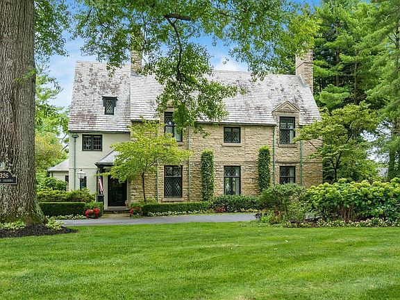 This impressive stone home commands attention with its stately street presence, impeccably finished interior, and highly desired location. Situated on a spacious lot with a private, park-like setting, this exceptional property marries traditional styling with modern living. An open kitchen and family room create the heart of the home and are complemented by an elegant entry foyer, living and dining rooms, private office, additional work station, mud room, and a heated four-season room which promises to become a favorite retreat. The upper levels include a sun-filled primary suite with spa-like bathroom and totals five bedrooms and four full bathrooms plus laundry. Additional highlights include a finished lower level with half bath, circle drive, and two garages for up to four vehicles.