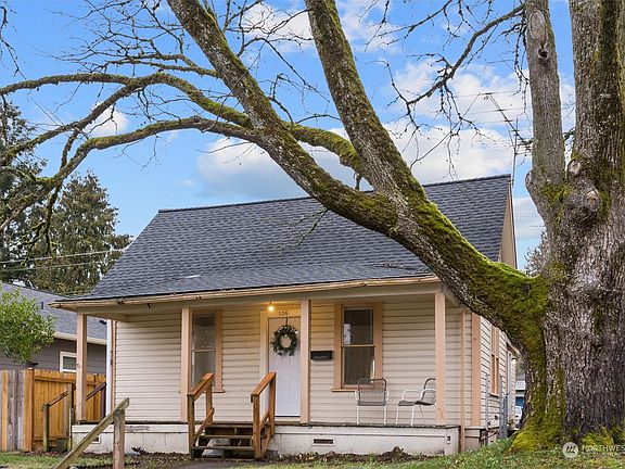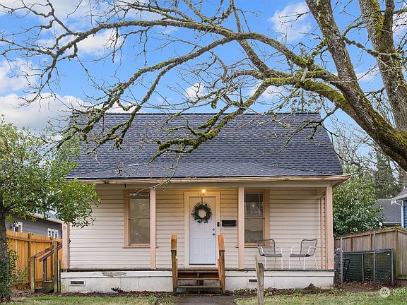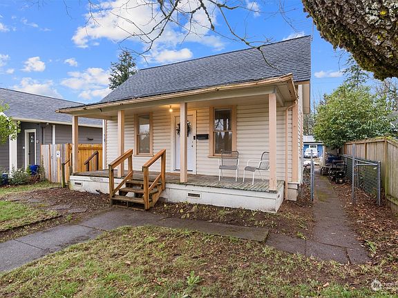 Classic 1901 bungalow in the heart of downtown Arlington! This charming 2-bedroom, 1 bath home features an updated kitchen with plank tile flooring and stainless steel appliances, renovated full bath with cast iron tub, large living room with coved ceiling and wide door and baseboard trim throughout! Large utility/mudroom with access to backyard and under house storage cellar! All appliances, including washer and dryer stay! New composition roof in 2020 and Hardi Plank siding currently being installed! Close to schools, parks, shopping, restaurants, hospital and medical facilities. Alley access to off-street parking and community garden right across the street! Tons of original charm and potential!