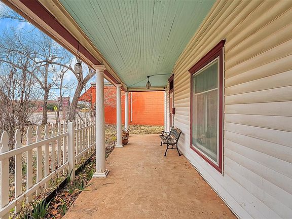 This is an adorable, historic home with a very unique look and charm. It is located directly across the street from the high school and therefore, just walking distance to all of the schools. It is just 2 1/2 blocks from downtown, so everything is practically within walking distance: churches, post office, banks, shopping, etc. It is in a very good location in town. The house has a wrap around porch with wooden columns and a white picket fence in the front - great curb appeal. Inside and out thre is unique painting of the woodwork. As you enter the front door, the wooden staircase in the entryway has beautifully painted details. Downstairs rooms include the livingroom, dining room, kitchen, one bedroom and bathroom. The utility room was added to the back of the home, through the kitchen.