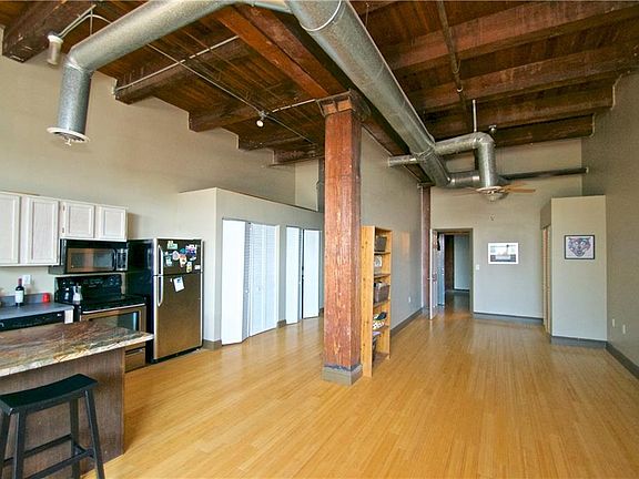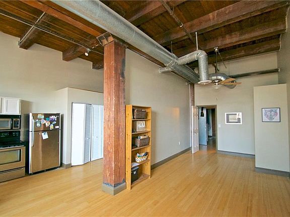 Experience the vibe of urban loft living in the unique Castleberry Hill neighborhood of Atlanta. True to the loft definition, this open, spacious condo offers double height-beamed ceilings, exposed ductwork, a wall of windows, aged brick walls, and hardwood floors. Within walking distance of restaurants, galleries, shopping, Mercedes Benz Stadium, and Phillips Arena this great space offers a piece of the past with the excitement of Atlanta's urban center. One assigned and secured parking space is included. **FHA Approved**