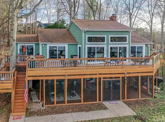 Exceptional WF views await from updated Ranch w/Bsmt. Extensive Trex pier/dock upgrades (over $100k) & no-maint deck w/glass balusters! Dbl cov slips w/Hydrohoist lifts. Lower screen porch for entertaining has waterproof floor, fan & space for billiards/rec. Wood-beamed GR's lg stone wall has FP, orig wood walls & HW floors w/lg dbl pane windows/sliders lending wide-open views across the water! Open flrplan Kitchen w/new cabinetry, Curava tops, tile backsplash & wood-look tile floor has SS appls incl new stove. Eat-in bar, wet bar (new sink/tops) & custom WI pantry w/new floor. BRs all ensuites-2 on main incl Master w/FP & amazing views, new carpet, great storage & beautifully updated BA w/tile floor, WI shower, dual rainfall shower heads & Quartz top 2 sink vanity & gorgeous lighting. Bsmt offers Rec/GR opening to lg screen porch. BRs w/private baths, laundry & great storage space. H20 filtration sys, reverse osmosis water to Kitch sink/fridge, new H20 heaters & new well/septic.