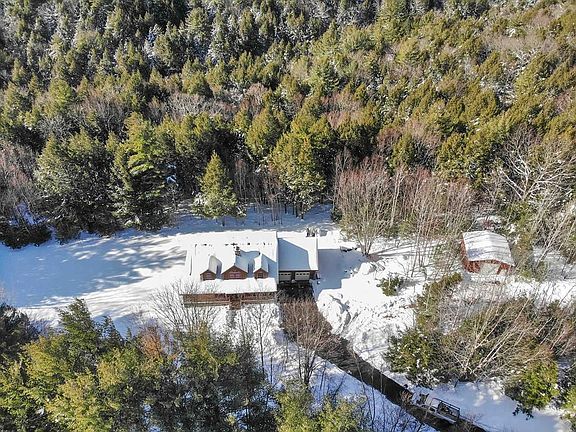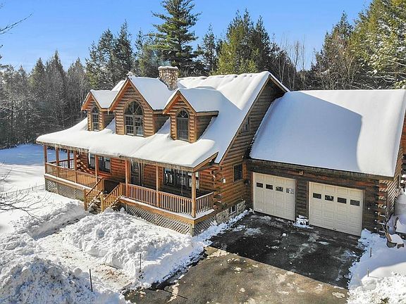 Welcome home to this custom built Log Home set back on over 3 private acres of land. Property features running stream & trails offering a serene & peaceful setting. This beautiful home offers a sprawling front porch a perfect spot to relax & enjoy a cup of coffee or a good book. Two car attached garage plus det. garage for toys & workshop area. Inside is a wonderful Open Floor Plan with soaring vaulted ceilings, spacious kitchen w/center island & large dining area for the cook in the family. Living rm offers a stunning floor to ceiling stone fireplace that adds warmth & charm. Master bedrm suite on 1st floor w gas fireplace, large walk-in closet, & oversize master bath w jet tub. 1st floor laundry for added convenience. The 2nd floor offers a loft area overlooking living rm which is perfect for a family room or office, 2 spacious bedrooms with custom built-ins, & a walk in attic that can be finished into a bonus room for added living space or storage. You will simply love this home