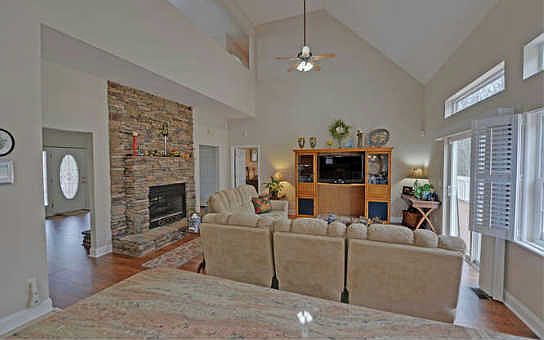 Wonderful mountain estate. 5.54 Acres located in The Orchard close to Lake Nottely. 3br plus large office or formal dining room or 4th bedroom. Large great room w/ see-through gas log fplc accenting the foyer entrance. Generous rooms Loft Den splits guest rooms. Master ste features private fplc, 2 closets,tile shower & jacuzzi tub. Lrg laundry rm with ample cabinets Main floor garage plus Lower level gar and double carport. Unfinished den with gas log fplc Fenced yard for family pets. Large hardwood trees Surround. Circular paved drive with room for many vehicles. Open back deck perfect for entertaining. Covered rocking chair porches. Room for a swimming pool in the back yard. Nice.