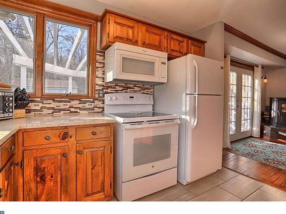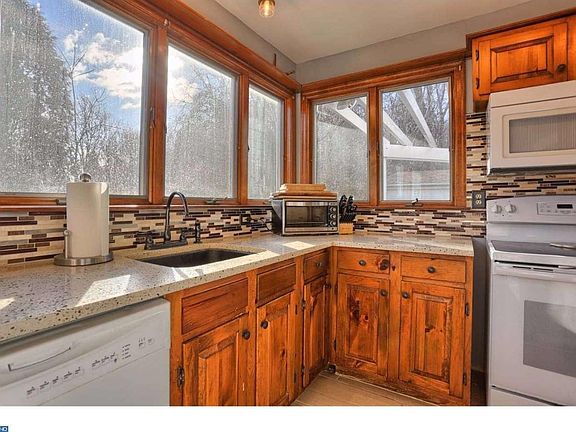 This beautiful home is unique, filled with charm and character and nicely positioned on the almost half acre parcel. Enjoy the many windows, which creative a bright and cheerful atmosphere. The recently remodeled kitchen features quartz counter-tops, tiled back-splash, new porcelain tile flooring and newer appliances. The hardwood floors were recently refinished. The openness of the floor plan allows for creativity in room use- place your furniture where it works best for you. There is a main floor bedroom and a recently remodeled bathroom. The second level provides two more bedrooms and a full bathroom. The finished LL has new paint and carpet, is approx. 594 sf and is included in the above stated sq footage of the home. The wrap around porch and a multi-level synthetic deck provide great opportunities for outside relaxation and a hot-tub is included. A detached 2 car garage and a large paved area provide ample parking for the owners and their guests. The roof was new in 2012, a new oil burner in 2014, plus a newer hot water heater and alarm system. A wood pellet stove adds supplemental heat to the home and reduces the cost of fuel. A one year HMS warranty is included with an acceptable agreement of sale.