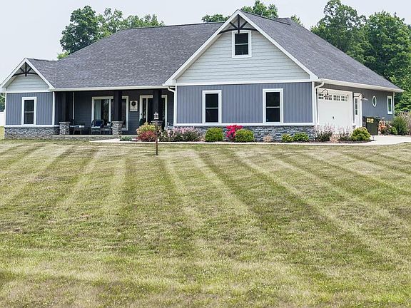This stunning custom-built ranch home offers a spacious and functional open-concept layout with all bedrooms and laundry located on the main floor. The upper level offers a large bonus room, perfect for an office, guest room, or additional living space. The finishes throughout the home are stunning, featuring granite countertops, amish-built custom cabinets, high-quality vinyl flooring, tile flooring, and custom closet system in the primary bedroom. Over 2,200 square feet of custom living space sitting on over 1.8 acres of land, this home won't last long! Don't miss your opportunity to call this property home! Conveniently located just a short drive from Bloomington.