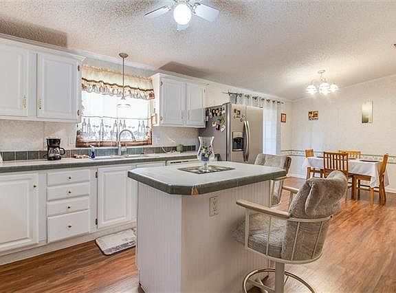 Lovely mobile home that sits on 4 Acres of land. This property is the perfect retreat to enjoy quiet country living. Inside you can see that the home has been meticulously upkept. The kitchen features an abundance of cabinets, electric cook top, and small island with extra seating. The master bedroom includes an en suite bath with a garden tub and separate shower. Off the back of the home is an enclosed patio where you can relax and enjoy the peaceful atmosphere. Inside the garage is a full kitchen where you can entertain your entire family!