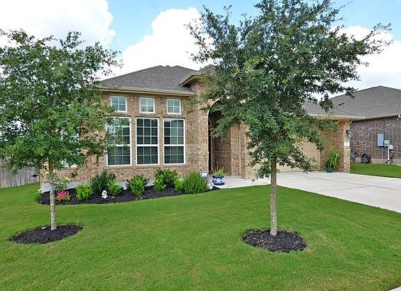 Why wait for building a new home? This one is ready and costs less! Home viewing stocked fishing pond and green space in the Estates of Sunfield subdivision. Enjoy Texas sunsets from your large covered patio. just minutes away from IH35. Hardwood and tiled floors throughout the living areas, carpeted bedrooms.Large master bedroom dual sinks, separate tiled shower/tub and massive walk-in closet. Stainless steel appliances, gas log fireplace. Don't miss this exceptional value.