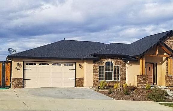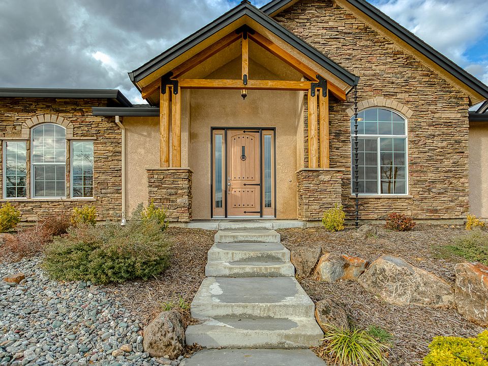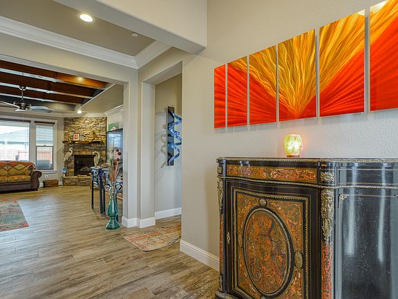 MUST SEE WOW! Contemporary rustic. Open concept. Soaring ceilings. Beautiful stacked stone fireplace. Huge kitchen island for entertaining. Spacious master bedroom and bath with stunning tile shower & tub surround. 2 additional large hall bedrooms, plus guest bedroom in it's own area on opposite end of house. Backyard is low maintenance landscaping w/room for pool Hot tub pavillion. Must see