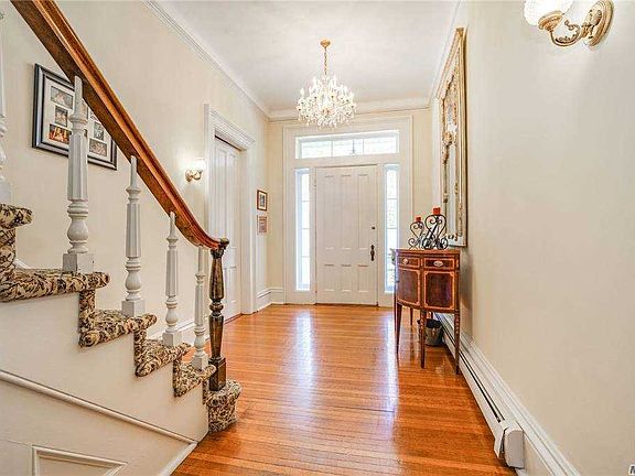 Waterfront on Nisseq River..Circa 1850.."Country Living At Its Best"..Enchanting White Colonial sitting on 5 Glorious & Verdant Acres located only 55 Miles from NYC ..This Lovely Home features 3 Floors of Living Space, Oversized Formal Rooms w/12' High Ceiling Height & Fine "Old World" Craftsmanship throughout, Wood Floors, 5 Woodburning Fireplaces, a First Floor "Barrister Style" Office, a Banquet Sized Dining Room, a Mammoth Formal Living Room with 2 Fireplaces, a Chef's Style Kitchen w/ Two Ovens, 2 Refrigerators & Many Prep Areas & a Center Island; A Back Covered Porch Across Whole House w/ Walls of Glass overlooking Rolling Green Lawns & Paddock Area. All BRS on 2nd and 3rd Floors are of Ample Size and incl an In-Law Suite on 2nd Flr. There are Updated Andersen & Pella Windows not common in an older home. There is a Full Dry Basement under the Main House. An Attractive Circular Front Enhances this Beautiful Picturesque Setting