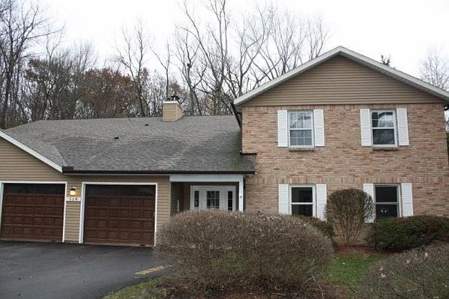 Quiet condo in private location with wooded views. New carpet, fresh paint. Spacious two bedrooms, two bathrooms. Kitchen with dinette includes appliances. Natural fireplace in large great room. Master bedroom has private bathroom. Patio doors to backyard. One car attached garage plus parking space. Central air. Pets allowed. Walk to downtown Delafield.