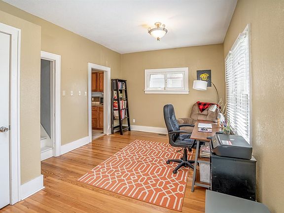 Charming bungalow in close proximity to shopping, restaurants, entertainment, and Kellogg. You will love coming home to this darling 1 1/2 story complete with lovely living room with hardwood floors, large windows and neutral décor, light and bright kitchen with all the appliances remaining, tile backsplash, breakfast bar, and eating space. Spend peaceful nights in the master bedroom with hardwood floors, large windows, ceiling fan and access to the full bathroom and family room. Enjoy just hanging out in this main floor family room with carpeting, ceiling fan, large closet, built-in shelving, and formal dining area with door to the backyard to make those summer barbecues a breeze! The spacious backyard features mature trees, storage shed, and wood fencing! Hurry, this move in ready home won't last long!
