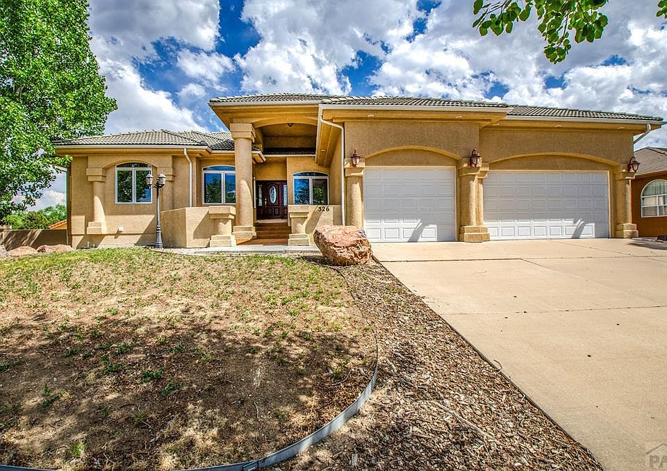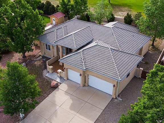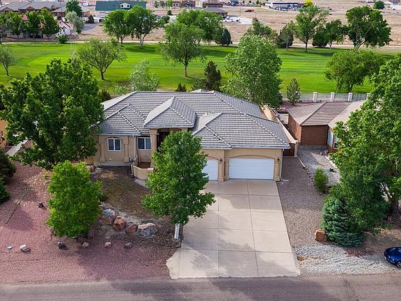 Dramatic, ranch style home on the #2 hole of Desert Hawk Golf Course! Almost 5500 square feet of beautifully finished living space, with 6-8 bedrooms, 5 baths, both living room & family room, formal dining, office, exercise room, ultimate wet bar/kitchen in basement and more!!! Stately columns on main level with the high ceilings and in basement provide a look not found in ordinary homes! Combine that with lots of tile, marble & wood and you have a truly eye catching interior! You've also got 3 fireplaces, including one in master bedroom. Separated master bedroom has its own entrance to the deck and a hot tub right there. Enjoy the Colorado outdoors on partially covered deck overlooking the golf course or walkout to spacious, private patio from basement. Landscaping in both front and back is defined by massive boulders that add a look not found in many yards. 6 foot stucco privacy wall encloses the backyard. Large cedar closet in the basement for seasonal clothes storage. There are two hot water heaters with circulating hot water. Construction details not found in many houses, including attractive tile roof. Ideal home theatre area in the basement, plus rooms with wide wooden window wells in the areas not part of the walkout. A former Parade of Homes Model!