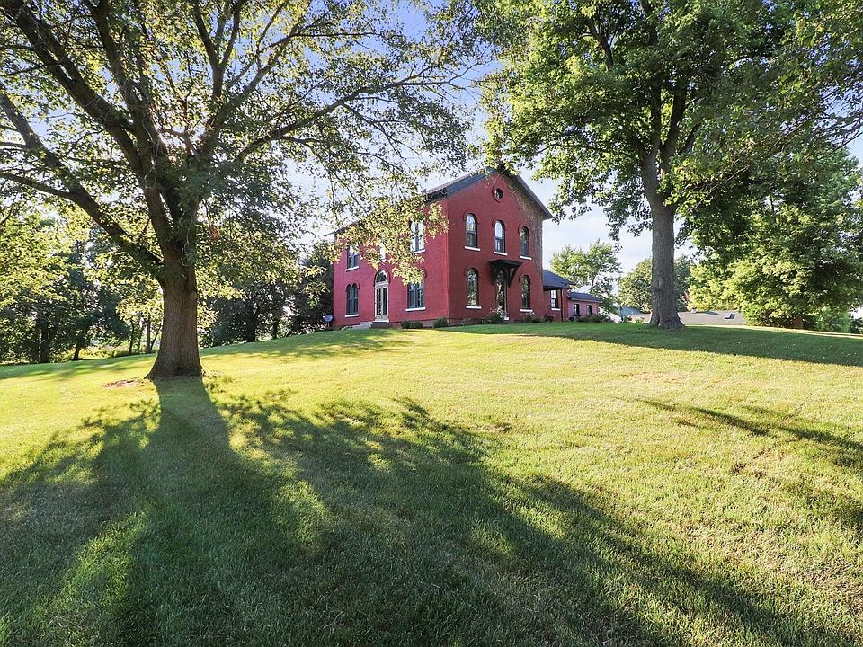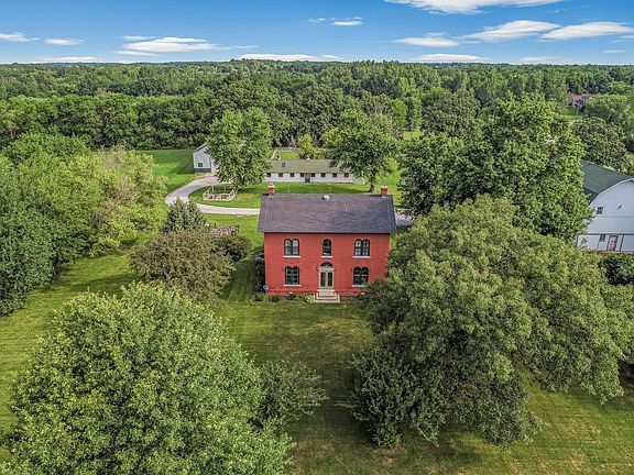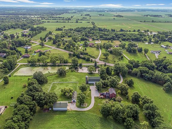 This 1857 Farmhouse stands majestically on 15 acres of rolling knolls. An important piece of local history, The Farmhouse is one of the oldest homes in Porter County and was a stop on the Underground Railroad. The brick home is an elegant symmetrical design of Federal style, boasting the original brick fireplace adorned with copper plating in the Gathering Room. Curved windows have been updated to the original charm & look throughout the home.Original brick floors line the office/flex space, with yellow pine wood floors throughout the home (refinished 2020). Moving upstairs, three bedrooms and 2 remodeled baths, with hints of exposed brick in the primary bedroom. New roof in 2020. All new doors in 2020. Huge event barn (2,232 sq. ft.) with garage and shop on lower level was freshly sided in 2014. Newer (2005) pole barn in immaculate condition (1,925 sq. ft). Horse barn with 2 horse stalls, garage space, and finished flex space. This property is rural elegance at its finest.