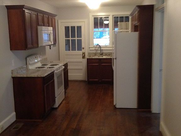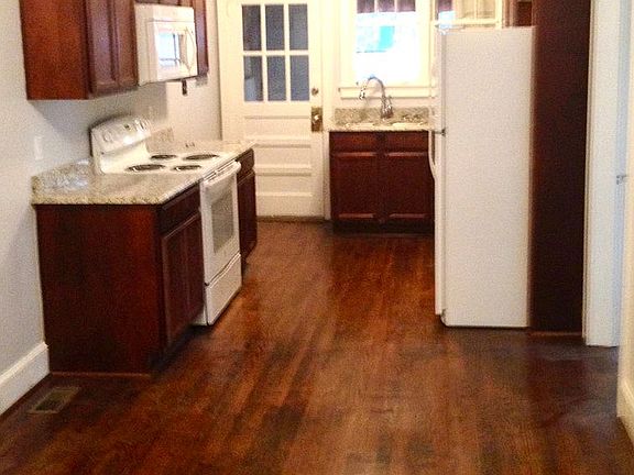Central heat and air. Refrigerator, stove, microwave, dishwasher, washer/dryer include. Water included. Fireplace, hardwood floor, ceiling fans. Garage parking for one vehicle. Parking in back has at least one more parking space. Street parking available. No pets.