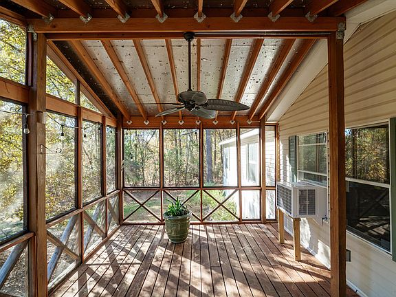 Newly renovated home located in a gated lake community on 1.6 acres! This home has many renovations to include NEW roof, NEW LVP flooring throughout, NEW paint, NEW butcher block countertops in the kitchen and much more. This property offers a ton of space inside and outside. Enter the home via the front screened in porch to the large living room with vaulted ceilings that adjoins the newly updated kitchen, breakfast area, and family room with fireplace. The kitchen has tons of freshly painted cabinet and counter space with NEW hardware. All appliances are included and there is a pantry with NEW custom shelving. The master suite offers a large bedroom and adjoining bathroom with dual vanities, garden tub, stand up shower, and walk in closet. The 2 secondary bedrooms are spacious with a shared bathroom. Lastly, there is nice laundry room that has a washer/dryer already in place and access to deck on the outside. The rear of the home has a 2nd screen porch. The property offers a perfect blend of yard and wooded areas in a private setting. A shed is included that can be utilized as a workshop or for storage.