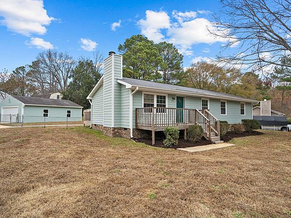 SELLERS OFFERING $3500 USE AS YOU CHOOSE!! This charming home has so much to offer! Desirable features include a large corner lot, fenced-in backyard, detached 2 car garage on a half an acre! The outdoor space is perfect for accommodating all of your needs. Whether it is enjoying the large deck for BBQs with family and friends or a moment of tranquility on the covered patio for your morning coffee. NEW French doors lead to the freshly painted kitchen with NEW granite countertop and NEW Flooring. The gas-log fireplace with it's brick hearth, beautiful wood paneling and ceiling beams makes this an inviting and comfortable living room. Additional features include a new garage door, new septic system with an all new drainage field. Washer, dryer and refrigerator all convey. Start Packing !!!