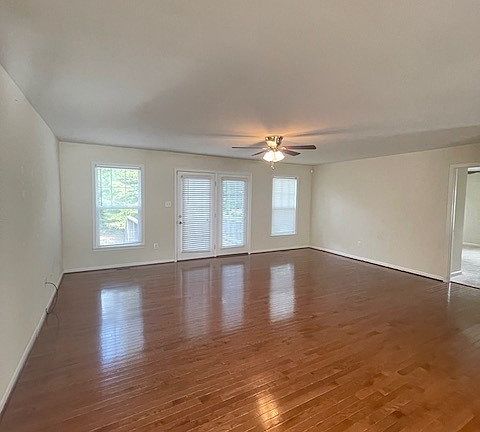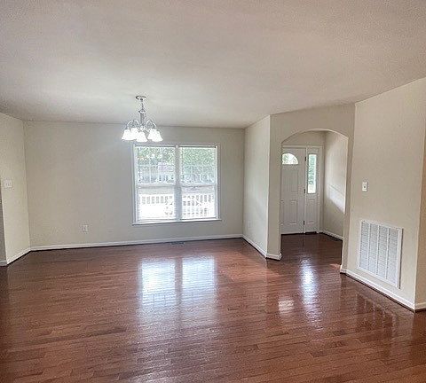 Home Features a Front Covered Porch, Vinyl Siding and Trim, Rear Deck and Side Entry off the Paved Drive. Entry at Front Foyer which Boasts Beautiful Hardwood Flooring that leads you to a Large Open Floor Plan to the Family Room and Dining Area with Hardwood Flooring as Well. The Kitchen with Breakfast Bar comes with an Electric Stainless Oven and Range with over the range Stainless Microwave and a Dishwasher. Tenants will need to provide own Refrigerator, Washer and Dryer. Ample Cabinetry Storage. The separate Laundry Room off the Kitchen features a Separate side entry and Washer & Dryer Hookups only. Three Spacious Bedrooms with a Private Primary Full Bath with Stand Up Shower with direct access from the Primary Bedroom. Full Hall Bath with Double Sinks. HOA fees are included in the rental price.