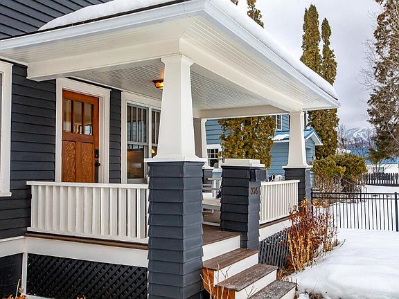 You'll be delighted by this updated Whitefish home radiating vintage charm. It proudly fronts one of the most desirable avenues in town and welcomes passers by with its inviting covered front porch. Step through the craftsman front door to the stylish living spaces. The original wood floors have all been refinished creating a beautiful base for the overall design palette of the main floor. Shiplap walls, high ceilings and butcher block countertops adorn the kitchen which is open to the living room. The primary bedroom suite pleases your senses with a designer bathroom and walk through closet. A cozy sitting room and another full bath complete the main level. The upstairs has all new flooring, another gathering area, two large bedrooms and a full bathroom. Adding to the curb appeal is a wrought iron fenced front yard with pleasant landscaping. You'll find a relaxing backyard that is perfect for summer entertaining with a large terraced deck overlooking an ancient maple tree. Off street parking both in front and in back of the home make this home a rare find.