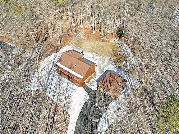 Homes like this are the reason why people move to the Pocono Mountains! Perfectly positioned on 1.42 acres, this TRUE LOG HOME defines rustic style! Let's take explore the property...The elongated paved driveway greets you to 326 Tatra Drive in Lehighton, Pennsylvania. As we approach the residence, the separated 2 car garage stands out with its oversized storage possibilities. The front porch of the home, sets the tone, we start to realize that this is not a cookie cutter dwelling. As we walk through the front door, we are immediately impressed with the skylights, wood finishes, plank pine walls (not an inch of sheetrock here), steel construction accents, stone workings, and unique open floor plan. The lower level welcomes us into the living room with a propane stone fireplace insert and cathedral ceilings. On one side we transition into the kitchen with center aisle, dining area and the other side of the main level houses the bathroom, basement access, and 2 bedrooms. The basement is an impressive 1000 sq ft of bone dry space with 8 ft ceilings! The upper level is as unique as it gets with the final bedroom, bath, and footbridge to the loft area w/side storage access(es). STR's are not allowed in Franklin TWP so enjoy the peacefulness of the neighborhood and there is no HOA or dues to worry about here!!! Welcome home!