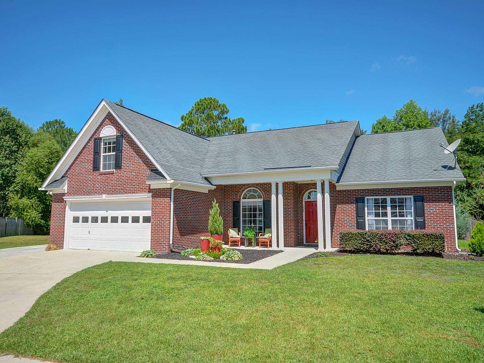Come live in this beautiful all-brick home in Traditions! Located on a cul-de-sac lot, just minutes from area schools, and shopping and dining, this 3 bedroom, 2.5 bathroom, 2,613 sq. ft. home is move-in ready and waiting for you! Boasting: great curb appeal; a 2-car garage; a charming front patio; a formal dining room with vaulted ceilings; a formal living room with high ceilings and tons of natural light; an updated kitchen with subway tile backsplash, Viatera quartz countertops, stainless steel appliances, island, large pantry, ample cabinet space, bar seating, and a breakfast nook; and a large open living room with vaulted ceilings, a cozy gas fireplace, and plenty of natural light. The spacious main floor master bedroom features high ceilings and a private en suite bathroom with a double vanity, separate water closet, walk-in shower, relaxing garden tub and large walk-in closet. Two additional good-sized bedrooms, a full bathroom, and a laundry room round out the main floor. Need more space? Don't miss the finished room over the garage - perfect for a media room, or private home office! Out back is a fully fenced yard complete with a large storage shed with three different areas, a patio and plenty of space to entertain. The HVAC system was recently installed in 2017 and features three different zones: the main living area, master bedroom, and upstairs bonus room. This home has it all and is waiting for you; come make it yours!