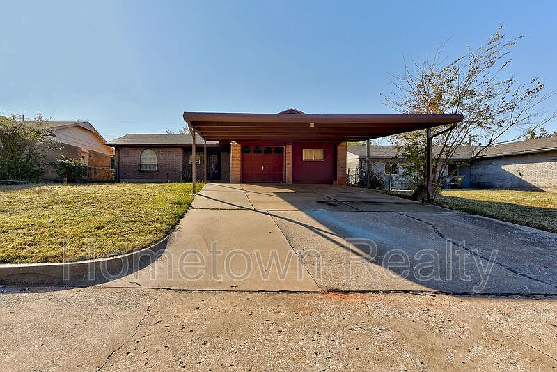 Tucked off Air Depot and NE 10th Street, this oversized three bedroom with garage conversion is just the home you've been searching for! With plush carpeting throughout the living and bedrooms, newer paint throughout, ceiling fans and an amazing updated kitchen with oversized dining nook. Kitchen has updated countertops, newer flooring and stove/range! All bedrooms are similar in size but the garage conversion would make a perfect main suite with its huge size. Another one of the bedrooms is a perfect suite as well with an attached half bathroom. A large hallway bathroom between the other rooms features tons of storage space. Features two car carport + large driveway; backyard is fenced a Additional pet deposit of $300 per pet and monthly pet rent of $25 per pet is required. All applicants must complete a pet screening report regardless of ESA, service animals, household pets or having no pets.
