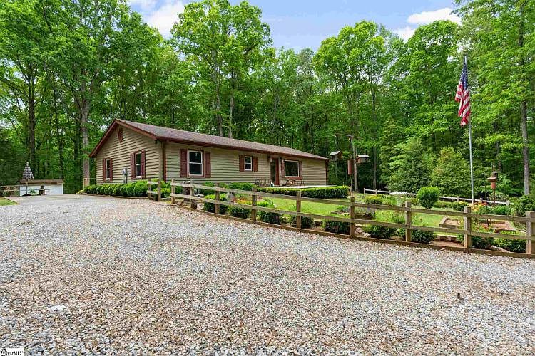 WOW! A private and peaceful 12+ acre retreat is waiting for you! This extremely well-maintained home boasts an inviting split bedroom, open floor plan, gorgeous hardwood flooring, a classic wood burning stove and an updated kitchen with granite countertops and all appliances included. The huge owner's bedroom features a walk-in closet and a private bathroom with double vanity, jetted tub and separate shower. The additional two bedrooms are generously-sized with large closets. The massive back deck overlooks the beautiful land and abundant wildlife. Enjoy the country feeling while still being conveniently located to Greenville, Anderson and Simpsonville. Zoned for Greenville County Schools. Schedule your showing today!