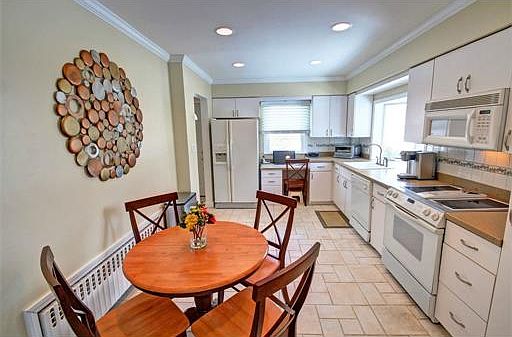 Custom Home can be 3 to 4 bedroom home w/ a Ton of space! Updated large Eat-in kitchen opened to the Living room w/woodburning fireplace and custom built-ins. Heated Breezway for more living space, Nice sized Master Bedroom on 1st level, Formal dining room with decorative molding. Possible 2 bedrooms on 2nd level, must see this amazing space, light and bright with 2 skylights! High ceilings and Dry large full basement! Fenced in Side Yard. Maintenance free Vinyl siding, 2 car garage. Fully remodeled bath. Home has a ton of curb appeal!