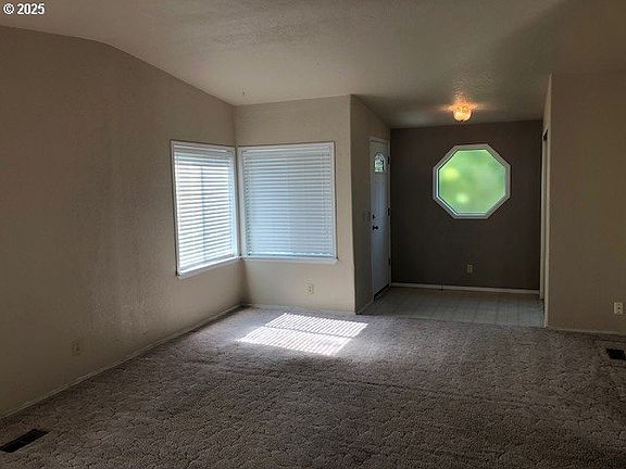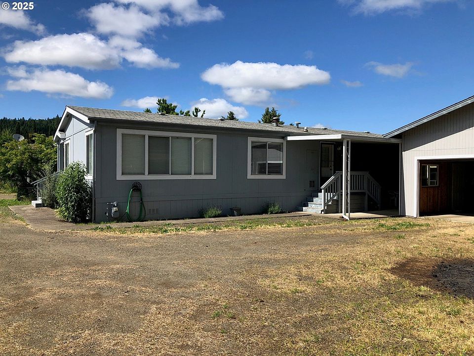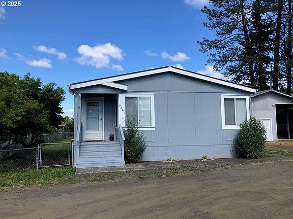 Spacious and well maintained manufactured home in Sutherlin. This wonderful home features a good sized primary bedroom with bath that has a tub, a separate shower and double sinks. The second bedroom has a direct door into the other bathroom. Nice kitchen with plenty of oak cabinets and lots of counter space with an eating bar, ceiling fan, skylights and all appliances. Dining room is off the kitchen. The living room is very spacious with lots of windows for light. The separate laundry room has a service sink, washer, dryer oak cabinets and exterior door. Home has w/w carpets and LVP flooring. Newer outside paint and plumbing has been replaced. There's a cement breezeway between the house and garages which makes a great covered patio area. One side of the garage could be converted back to a 2 car garage. There's a wall on one side to accommodate a hobby/craft room. Great shop behind the garage with 220 electrical, lots of shelves, storage areas and doors to the outside and into the garage. Covered RV parking with dump. Big private fenced back yard. Extra parking area for boat, truck, cars and more. Home is move in ready. Great location - close to all service.