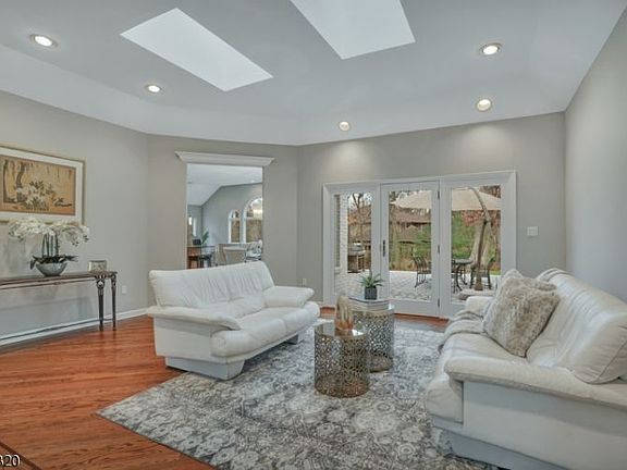 Welcome to this well-built custom ranch located in the beautiful town of Greenbrook! This move-in home offers a bright and easy one-floor living perfect for today's lifestyle. The moment you walk thru the front door you will be amazed by the open floor plan and the numerous windows and skylights that allow plenty of natural light. Just refinished gorgeous wood floors thru out the living, dining, family room, and bedrooms areas. Oversized kitchen with central island, plenty of cabinetry, SS appl, granite counters, and separate dining area. The family room has cathedral ceilings, a wood-burning fireplace, plenty of windows that allow the perfect view to the private backyard. Large master suite with walk-in closet, large master bath with jetted tub and stall shower, bidet and double sink large vanity. The basement has high ceilings, it is partially finished with a full bath. A long driveway with pavers allows plenty of parking. The living room, family room, and master bedroom have access to the stone patio where you can entertain or just relax and enjoy the beautiful backyard. Close to NY trains and buses, shopping and restaurants. Award-winning school system!