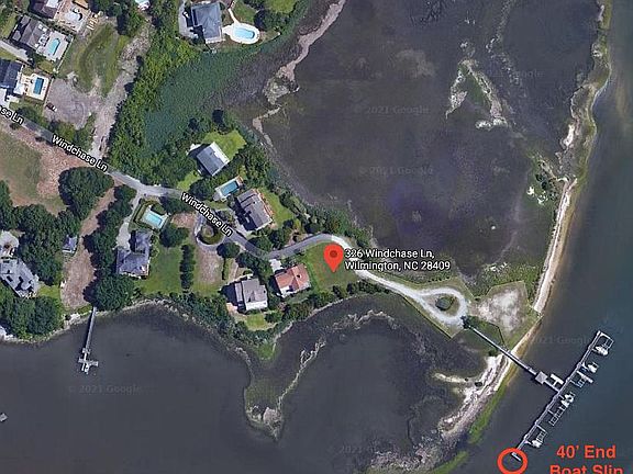 Imagine driving home through an old oak canopy on winding roads to your perfect castle by the sea in an established waterfront coastal neighborhood. This one of a kind end lot is ready to host your dream home. Located where Whiskey Creek meets the Intracoastal Waterway, it boasts a panoramic view up and down the ICWW and the creek and with a view covering 270* of water frontage (see for yourself in the video on this listing!). Views from upper stories of your future home would include large swaths of Masonboro Island and the Atlantic Ocean. Seize this rare tucked away gem of Wilmington ICWW waterfront with water access and boat slip while you can! Willing to work with buyer's agent. By Sea: Lot includes the 40 ft boat slip on the right end of the community pier, perfect for supporting your dream coastal lifestyle. Whether it’s waking up to the most incredible sunrises on the ever-changing canvas of an ICWW morning sky, feeling a fresh sea breeze brush gently across your face, taking in the salt air, or having a front row seat to a coastal estuary environment teeming with wildlife, 326 Windchase Lane has it all. Launch your kayak to explore the creek and barrier islands, fish from the pier, feel the sand between your toes on the little strip of beach along the neighborhood marsh front, or hop on your boat for all the adventure and relaxation the waterway has to offer with easy access to the ocean a few miles North; Wrightsville Beach waterway dining is an easy 4 miles North by boat. By Land: Homesite is a 5 minute drive from local coffee and bites at Masonboro Station; 10-15 minutes to 5 different grocery stores; 20 minutes to Wrightsville Beach, Mayfaire Towne Center shopping, dining, and entertainment, and boutique shopping at Lumina Station; 25 minutes to waterfront dining downtown on the Cape Fear Riverfront. This little piece of paradise off of Masonboro Sound Road is a tranquil escape that’s still close to everything the amazing coastal town of Wilmington has to offer. Ready to call it home and start building your dream?