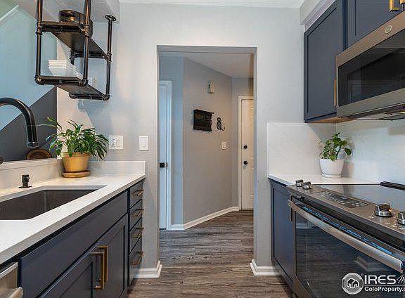 Newly remodeled 2 BR King's Ridge condo w/soaring ceilings & bright, open floor plan. ALL NEW 2019-21: Gorgeous kitchen w/Kraftmaid cabinets, soft-close drawers, Slate GE appliances, Silestone quartz counters, & more. Also new windows w/transferable lifetime warranty, Lennox Furnace, CoreLux plank flooring, carpet, paint, Ecobee thermostat, dimmable LED lighting, & fixtures. Primary BR w/custom Elfa closet system, top-down bottom-up shades. Loft converted to conforming bedroom w/sound-deadening insulation. Delightful private deck w/mountain views & locking storage closet. Juice Box Electric Vehicle charger in assigned garage parking space included! Recent improvements to HOA including new roof, hot tub, pool furniture. Nearby railroad part of Quiet Crossing program. Excellent location on bike path for easy access to nearby shops, restaurants, breweries, & Valmont Bike Park. Walkable to Google, Twitter, Splunk and others.