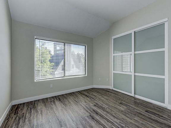 Welcome to this beautifully updated 2-bedroom, 1-bathroom condo featuring vaulted ceilings and an open floor plan. The kitchen boasts newer appliances, and there's a convenient full-size stack washer/dryer included. Enjoy cozy evenings by the fireplace and comfort provided by the air conditioning. The spacious master bedroom offers ample relaxation space. Additionally, this unit includes underground parking with one assigned spot. Outside, you'll find lovely grounds with amenities such as a pool, hot tub, and clubhouse, perfect for relaxation and socializing. Situated along a bike path and close to bus stops, commuting is made easy from this convenient location. Don't miss out on this inviting home! "Move In Special" - $1,000 Move in concession after first full month of rent is received