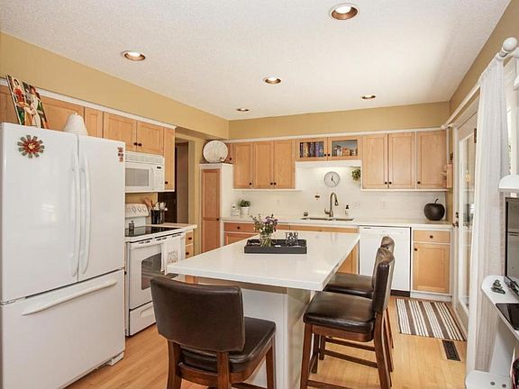 Meticulously kept 3 bedroom 3 bathroom split level with lots of updates in nice quiet Crystal neighborhood offers gorgeous hickory hardwood floor in entry way and some of the main level, center island eat-in kitchen with maple hardwood floor, built-in microwave and sliding glass door that leads to deck, formal dining room, large living room with vaulted ceiling and beautiful bay window, master bedroom on main level with ceiling fan and private ½ bathroom, all 3 bedrooms on main level with ceiling fans, bonus built-in linen closet in hall outside of bedrooms, full bathroom on main level with tiled floor and tile around tub, spacious family room on lower level with brick gas fireplace, bar room on lower level with lots of cabinets and sliding glass door that leads to back yard, 1/2 bathroom on lower level, big back yard is partially fenced and provides lots of room for fun and recreation, great under stair storage and 2 car garage with work bench and lots of built-in cabinets for storage. All this in a fantastic location close to downtown Minneapolis, West End restaurants and shops, grocery store and a block from bike/walking trails and park.