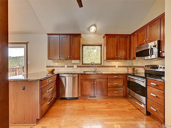 Very convenient central Evergreen location, close to hiking, biking, shopping and schools located on a quiet cul-de-sac, here is your future Evergreen home! Remodeled, updated and lovingly cared for, this home features brand new windows, vaulted ceilings, clerestory windows to bring in the natural light, slab granite and cherry cabinets, stainless steel appliances, hardwood floors in the remodeled kitchen and dining area, south facing decks, a dog run accessible from the walk out lower level, remodeled bathrooms including a ¾ remodeled master bathroom, full bath on the main level and a ¾ bathroom downstairs, a whole house attic fan plus outside spaces to take advantage of all year around. Enjoy the annual Evergreen rodeo from your own deck! Be a part of this wonderful community and all it has to offer with all of the open spaces, and world class skiing close by while close enough to Denver to commute for work. This is where you will want to spend your free time.