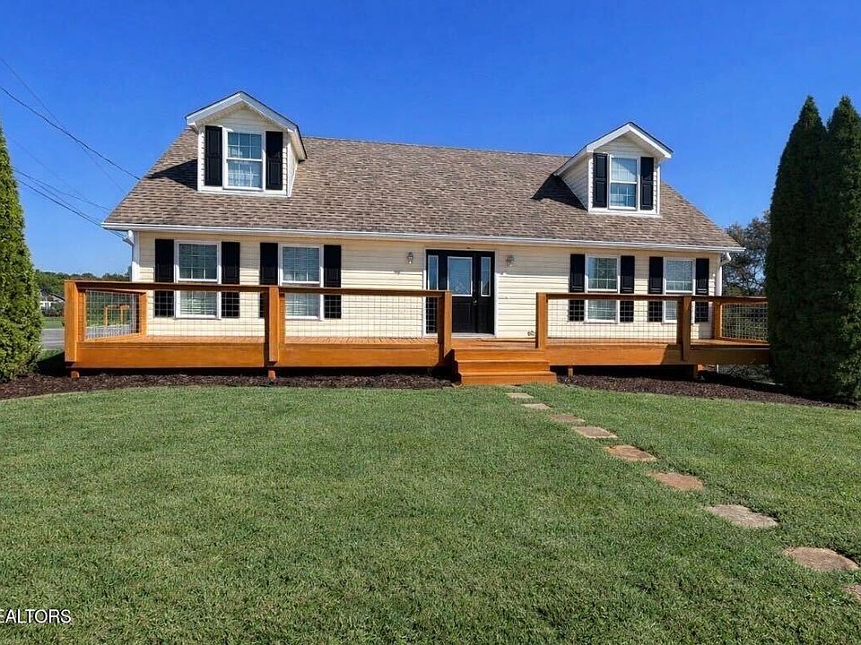 MOTIVATED SELLERS!! Charming Cape Cod-style home on a desirable corner lot in Strawberry Plains. This spacious over 2000 sq ft residence offers 3 bedrooms, 2.5 baths, plus a bonus, featuring a primary suite conveniently located on the main level. The main floor also includes an eat-in kitchen, with granite counter tops, a flexible bonus/office space, and a comfortable layout ideal for everyday living. Upstairs, you'll find two generously sized bedrooms and a full bath to share. Outside, enjoy summer days with a 15-ft round above-ground pool, privacy fence, an amazing view of mountains, and 3 newer decks, perfect for entertaining. This property also boasts a huge concrete driveway complete with a hog-wire railing and basketball court-ideal for recreation or extra parking. Major updates include a roof installed in 2013 and both HVAC systems replaced just few years ago. This home combines space, functionality, and outdoor amenities in an incredible location that's convenient to Knoxville, Jefferson, and Sevier Counties. Call today this one must go.