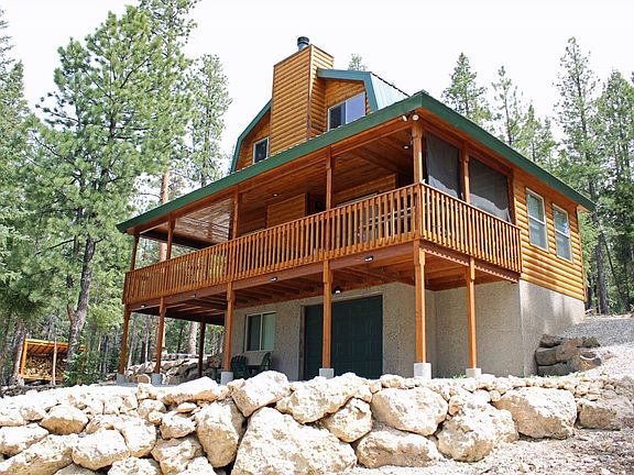 Fall in love with this first time on the market cabin located on a cul de sac in Swains Creek Pines! Built in 2014 by Josh Flanigan, this three story, gambrel mountain home is sure to catch your eye. The main level features beautiful kitchen with dining bar, separate dining nook overlooking the wooded cul de sac, wood fireplace in the living area, bedroom and full bath. Upstairs, there are two more bedrooms and a full bath. The lower area houses the laundry and there's also an unfinished 4th bedroom/3rd bath. The attached 512 st of garage and 256sf detached ramp-up garage for toys will provide plenty of space for your recreational vehicles & storage. The large lot has a mild slope, and has been landscaped with lava boulders, gravel, and outdoor fire pit. There is also a woodshed for storing your firewood. 464sf of covered wood decking will allow you to enjoy the wonderful outdoors right at home. The cabin shows like new and has been very well cared for. Offered furnished & turn key.