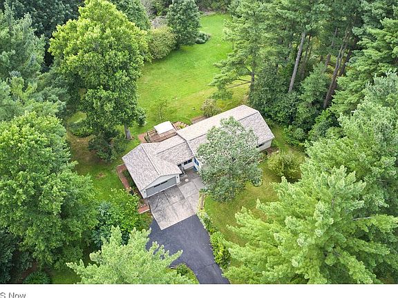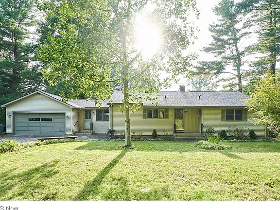 Don't miss this fabulous, well cared for ranch in Richfield Twp on 4.22 acres! This home features hardwood floors, neutral decor and a walk-out lower level. The kitchen includes room for dining and all appliances. Three bedrooms and a roomy full bath. Living room on back of the house to enjoy all the beautiful views. French doors open to vaulted breezeway/sunroom with a deck off the back sliding glass doors. There are hardwood floors under all the carpeting. The lower level highlights a spacious recreation room with built-ins and door to the lower patio, possible 4th bedroom or office and a full bathroom. The partially wooded property sprawls over 4 acres with a shed, creek to the north side and the possibility for a horse or chickens. Attached 2 car garage with hot and cold water. Recent updates include the roof and vinyl siding, well pressure tank and hot water tank. Endless possibilities and space to expand this home! Revere Schools. New septic system August 2023.