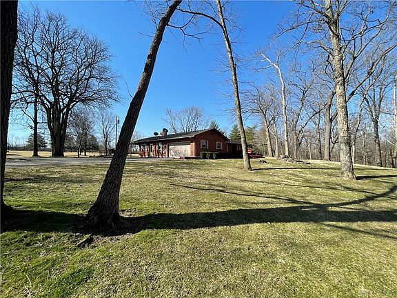 Here's your opportunity to own your own private retreat! Nestled on over 5+ acres, this sprawling ranch is a rare find! Beautiful setting, very private, natures sanctuary with flowing creek. Offers 4 bedrooms, 3 full bathrooms, 2 car attached garage and a 2 1/2 car detached garage 26x30, sunken family rm with wood burning (Buck) stove. Enjoy the covered patio w/ cathedral ceiling overlooks the gorgeous surroundings. 4th bedroom has private entrance -idea for home office / business, Master Bdrm. has WIC and additional double closet, Chicken coop stays, Several updates; Electrical Panel 2022, Refrigerator 2019, Carpet 2017, Hardwood Flooring 2017, Patio Doors 2016, Vinyl Windows 2017, Newer SS flue liner 2008, Water softener Beeco 2014, Added insulation 2004, Roof and Gutters w/ gutter guards 2003. Owner are selling "as is". (French doors to dining room in garage will stay.) This is a must see!