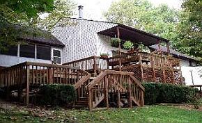 Just an incredible home with a contemporary flare! Situated on over 1/2 acre, there is very little yard work! There is lovely landscaping including euonymus in shaded area, evergreen trees, a small raised garden area and lots of perennials and bulbs. This has all been added by the sellers. There are milti decks and you feel like you are living in a tree house. There is a seasonal view of Lake Griffy. The lists of news and updating are as follows: the lower level family room with gas fireplace was added in 1999. The hot tub was installed in 1991 and the screen porch was reinforced at this time. The kitchen appliances were new in 2000 (smooth top stove with convection oven, refrigerator and dishwasher). Don`t miss the extra large pantry in the kitchen area. The ceramic tile was installed in the breakfast nook and guest bathroom in 2001, the carpet in the main floor guest room, study, guest bathroom, stairs to basement, and lower level family room and bathroom was installed in 2000. The g