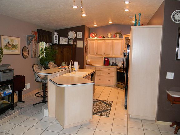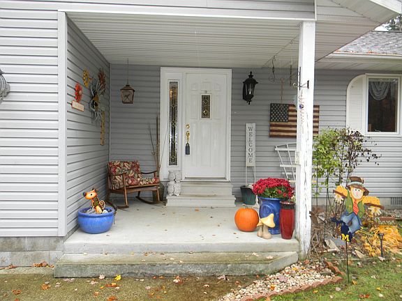 Large ranch home situated on 5 acres with a 24x30 pole barn. This is a well kept home in a private setting, open floor plan and spacious bedrooms. Master suite has a large bath and a beautiful view of the woods through sliding doors. Large covered entry will serve well for porch decorations through the seasons! Enjoy the outdoors on the rear deck with Pergola and watch the deer and other wildlife! Electric is installed in pole building. Central air, irrigation system, new furnace, pellet stove and most appliances stay. Very nice, clean and move in ready home!