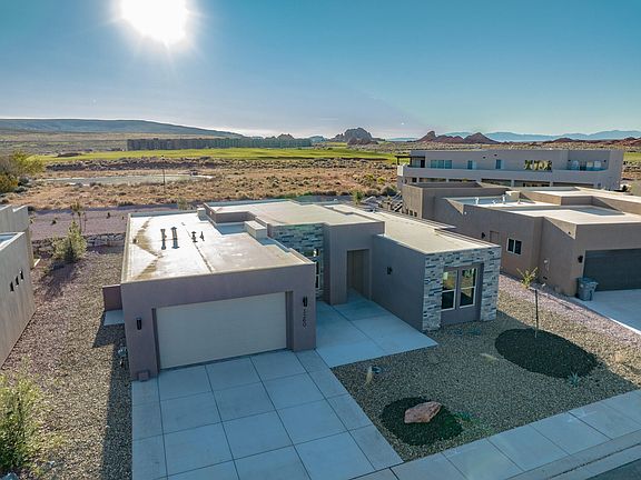 Beautiful brand-new home features high quality finishes, 3 bedrooms, 2.5 bathrooms, a flex room, spacious kitchen/great room for entertaining and a 2 car garage. Backs to open space. Enjoy beautiful sunsets & sunrises, stargazing from your back yard or just layout by the community pool. Amenities include two community pools, spa, pickle ball court, full yard maintenance with golf course & grille discounts. This is the gateway to OHV-ing, boating, paddle boarding, golfing, rock climbing, mountain biking and hiking at Zion National Park.