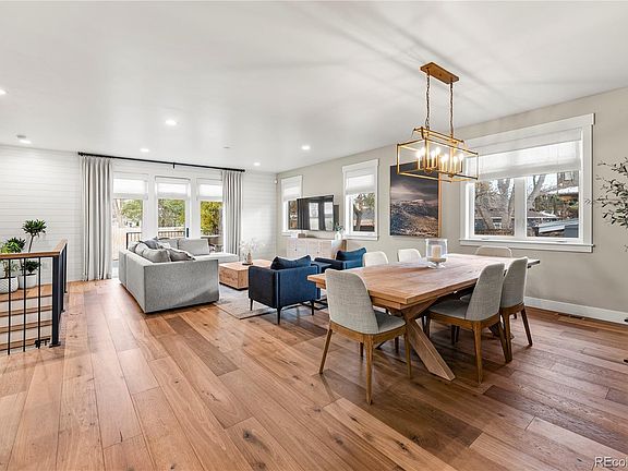 Introducing 3260 S. Corona Street—a stunning modern ranch-style home built in 2021, thoughtfully designed to balance style and functionality. This 5-bedroom, 4-bathroom residence boasts an open floor plan centered around a chef’s kitchen featuring sleek Café appliances, waterfall quartz countertops, and elegant pendant lighting. Adjacent to the kitchen, a spacious dining area ensures effortless flow for both everyday living and entertaining. The light-filled living room is a highlight of the home, with expansive windows and doors leading to a fully fenced backyard complete with a composite deck and a gas fire pit—perfect for enjoying Colorado’s outdoor lifestyle. The main-floor primary suite is a serene retreat, offering vaulted ceilings with a wood beam accent, a shiplap feature wall, and direct access to the backyard. The luxurious en-suite five-piece bathroom includes a soaking tub, multi-head shower, dual-sink vanity, and a custom walk-in closet with built-ins. A secondary main-level ensuite bedroom with a full bathroom adds versatility, whether for guests or a home office, while the mudroom, equipped with built-ins and patterned tile, connects seamlessly to the oversized two-car garage, complete with additional storage and a utility sink. The fully finished lower level enhances the home’s livability, offering three additional bedrooms, a full bathroom with custom shelving, a sprawling great room, and a dedicated storage area. Ideally located just a few blocks from vibrant restaurants, trendy bars, upscale shopping, Swedish and Craig hospitals, and the new Farm to Table Market, this home combines modern comfort with unbeatable convenience.