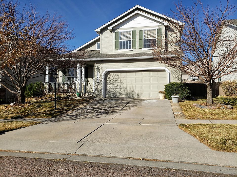 PENDING. Amazing Pine Creek home! Desirable D-20 schools. Convenient to I-25, shopping, dining, gyms, parks, and hospital. Fenced back yard for the kids and family pet. Home has living room, family room, and formal dining area. Granite in kitchen with newer appliances. Custom built-ins and fireplace in the family room. Main level flooring is low maintenance Luxury Vinyl Plank, which is very kid and pet friendly. Upper level has 4 bedrooms and two baths, with the master being a 5 piece with walk in closet. This home checks all the blocks for size, location, schools, and local amenities. Make Pine Creek your home! No Smoking. Tenant pays utilities, Owner pays HOA, which includes trash and recycle.