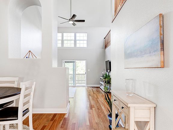 Entered for comp purposes. Lofty luminosity abounds in this beautifully updated + inviting residence with three private outdoor spaces. A spacious front patio beckons you inside to an easily flowing floorplan with towering ceilings. Delight in the fully updated kitchen featuring new Brazilian cherry hardwood floors, stainless steel appliances, generous cabinetry and sleek countertops. An expansive living area with vaulted ceilings is grounded by a fireplace providing ambiance to any gathering. New sliding glass doors open to reveal a sunny balcony. Upstairs, a flexible upper loft ideal for a home office offers partial views of Longs Peak. Three sizable bedrooms include a primary suite with custom closet and renovated bath. The walkout lower level offers versatile living space, a private patio and abundant storage. New carpet, paint, lighting, and other thoughtful updates have been made throughout. Enjoy a quiet community immersed in nature w/ access to parks, trails, lakes plus a clubhouse, pool + tennis courts.