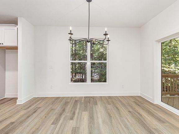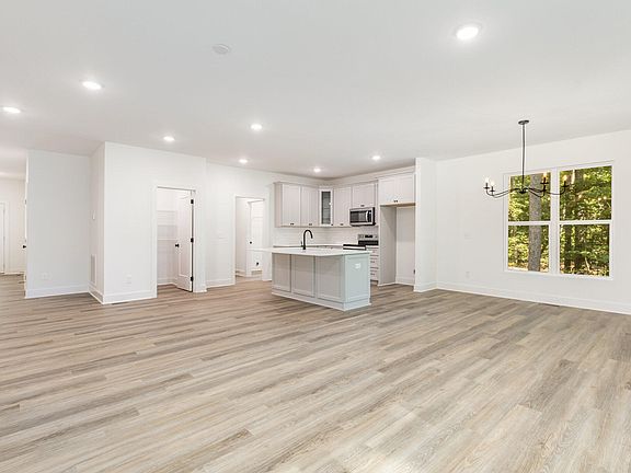 With a one level floor plan, an oversized zero entry shower, and tons of custom features, this stunning home is perfectly situated in Carolina Trace, a gated golf course community in Sanford, North Carolina. This thoughtfully designed home offers a harmonious blend of luxurious features and resort-style amenities. Step inside and be greeted by an expansive open floor plan, seamlessly connecting the gourmet kitchen, comfortable family room, and inviting dining area. Luxury vinyl plank flooring flows throughout these main living spaces, creating an atmosphere of sophisticated ease. The heart of the home is the spacious kitchen, showcasing a substantial island, elegant quartz countertops, and a stylish tile backsplash - an ideal setting for culinary creations and casual gatherings. The adjacent family room provides a warm and welcoming ambiance, anchored by a charming fireplace with custom built-in surrounds. Convenience is key with a practical drop zone, complete with built-in storage, conveniently located off the kitchen entrance. The main level hosts a serene master suite, where the ensuite bathroom exudes tranquility with its spacious zero entry walk-in shower featuring a tiled surround and dual vanities. Guests will appreciate the well-appointed guest bathroom, also featuring the convenience of dual vanities. Venture upstairs to discover a versatile bonus room, offering endless possibilities for a home theater, office, or recreation space. This level also includes a private fourth bedroom and a full bathroom, providing comfortable accommodations for family or visitors. Extend your living outdoors onto the delightful deck, accessible from the dining area, where you can savor peaceful views of the private backyard. Beyond the walls of this beautiful home, an unparalleled community awaits. Golf enthusiasts will be thrilled by the presence of not one, but two meticulously crafted Robert Trent Jones golf courses. Imagine strolling through the neighborhood with stunning lake vistas. Residents also benefit from a private golf course (with separate membership), round-the-clock security at the guarded gate, and a refreshing community pool. Enjoy the tranquility of this exclusive enclave while remaining conveniently close to the charm of Pinehurst, the accessibility of RDU International Airport, and a variety of local attractions. This new construction home offers not just a place to live, but a gateway to a remarkable lifestyle.