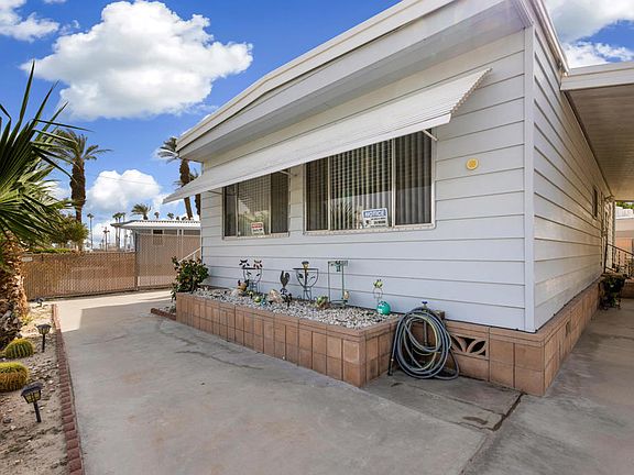 PRICED TO SELL! This sweet, quiet Tri-Palms Estates home is move-in ready and features concrete skirting, security fencing, plenty of covered parking and a large deck overlooking a great mountain view. Close to the clubhouse and pool. Motivated seller can close right away. Numerous updates in this older unit, which includes an extra room with private entrance that can be used as a den or caretaker's room, as well as a fenced yard and security gate. 55+ A GOLFER'S PARADISE with outstanding Mountain Views! Freshly painted and ready to go! LOWEST HOA Fees in Tri-Palms Estates, ($203/mo) 2 beautiful golf courses, tennis, pickleball courts, shuffleboard, 2 large swimming pools, two hot tubs and RV storage. Close to freeway access, Costco, Sam's Club, Home Depot, Walmart, Lowes, Theaters and many fine restaurants. Look no further for your fine new home in Tri-Palms Estates, a lovely Thousand Palms golf community where you OWN the land and unlimited golfing is FREE for two people.